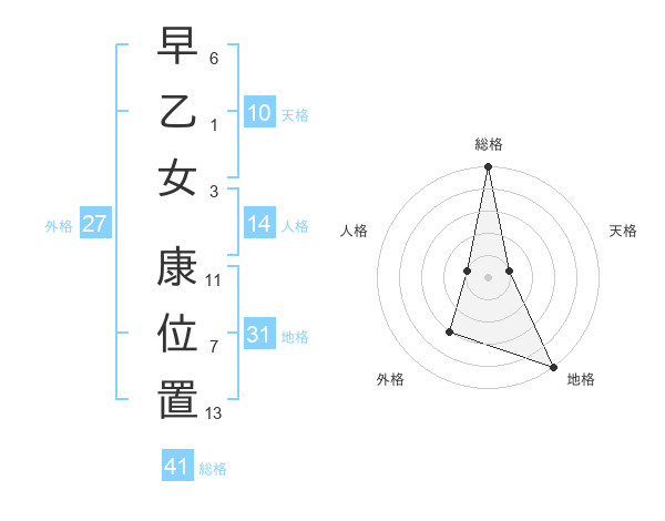 早乙女 康位置さんを姓名の画数から五運を鑑定
