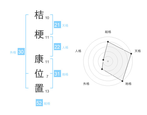 桔梗 康位置さんの総格は52画の4点!