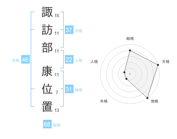 諏訪部 康位置さんを姓名の画数から五運を鑑定