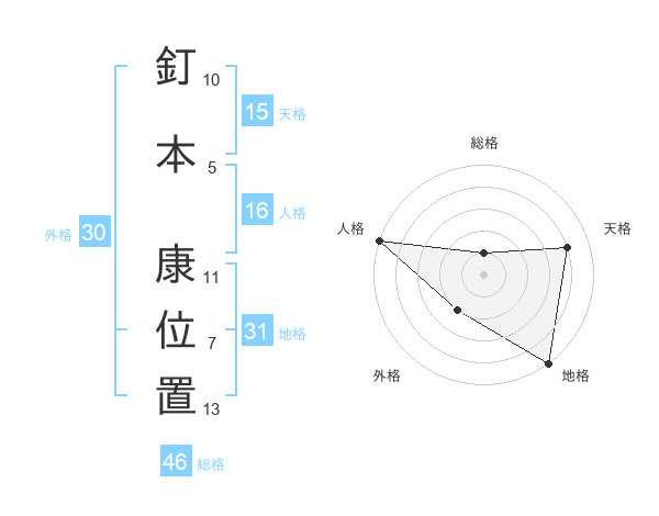 釘本 康位置さんを姓名の画数から五運を鑑定