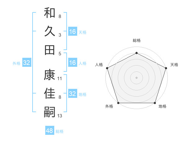 和久田 康佳嗣さんの地格は32画の5点!