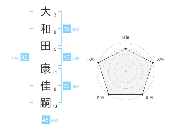 大和田 康佳嗣さんを姓名の画数から五運を鑑定