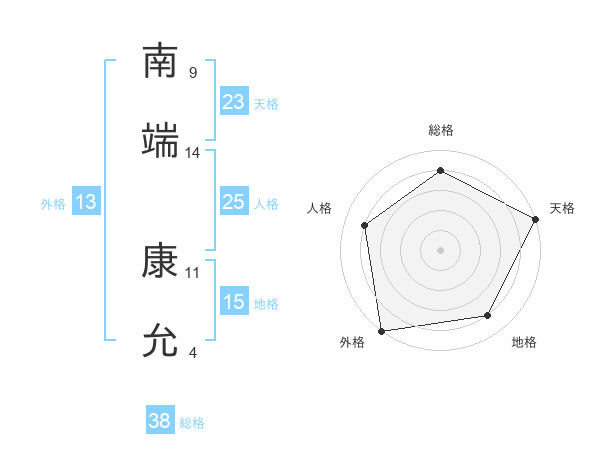 南端 康允さんの総格は38画の4点!