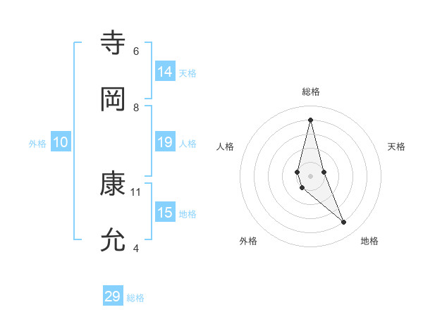 寺岡 康允さんの総格は29画の4点!