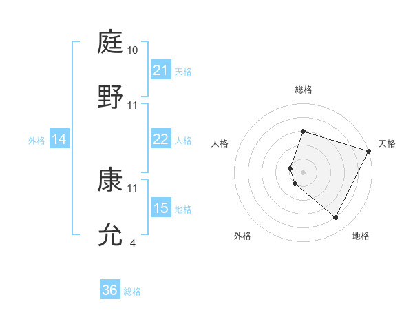 庭野 康允さんの天格は21画の5点!