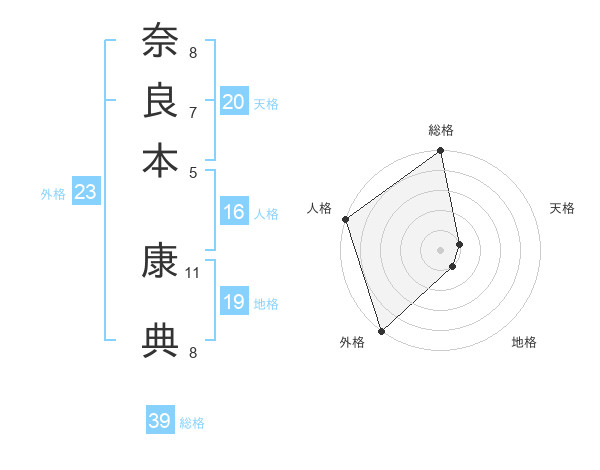 奈良本 康典さんを姓名の画数から五運を鑑定