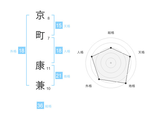 京町 康兼さんの天格は15画の4点!