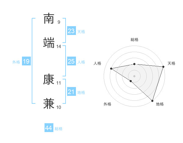 南端 康兼さんの天格は23画の5点!