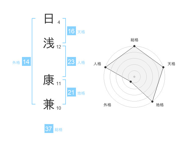 日浅 康兼さんの総格は37画の5点!
