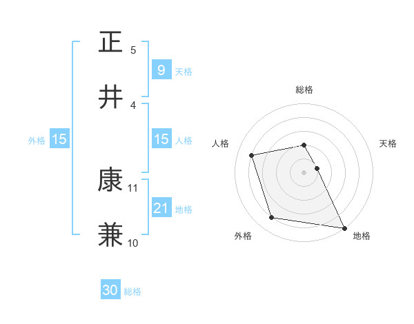正井 康兼さんの地格は21画の5点!