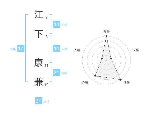 江下 康兼さんの総格は31画の5点!