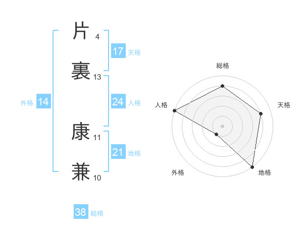 片裏 康兼さんを姓名の画数から五運を鑑定