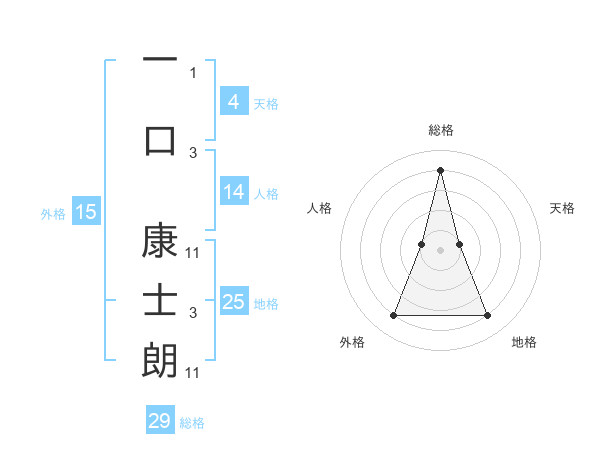 一口 康士朗さんを姓名の画数から五運を鑑定