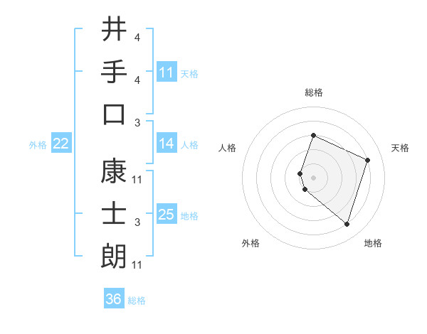 井手口 康士朗さんを姓名の画数から五運を鑑定