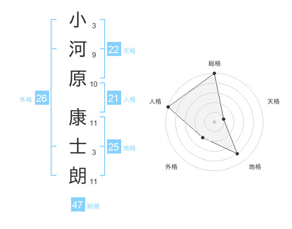 小河原 康士朗さんの総格は47画の5点!