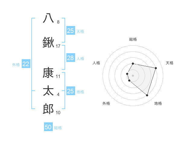 八鍬 康太郎さんを姓名の画数から五運を鑑定