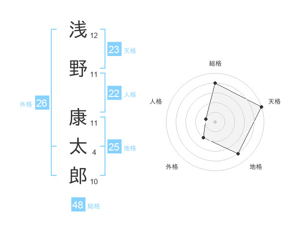 浅野 康太郎さんの総格は48画の4点!