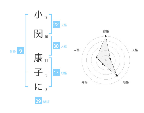 小関 康子にさんの総格は39画の5点