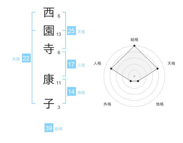 西園寺 康子さんを姓名の画数から五運を鑑定