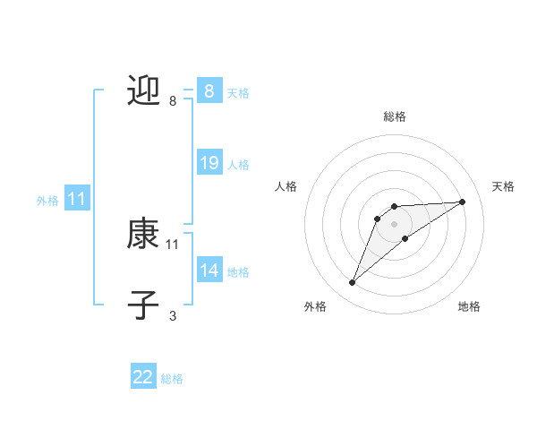 迎 康子さんの総格は22画の1点!