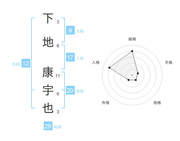 下地 康宇也さんの総格は29画の4点