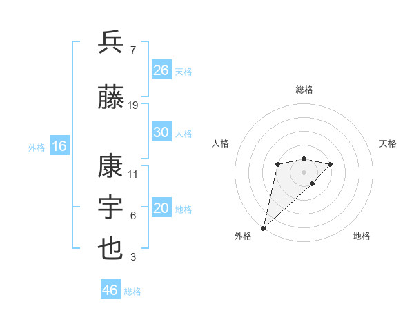 兵藤 康宇也さんの総格は46画の1点!