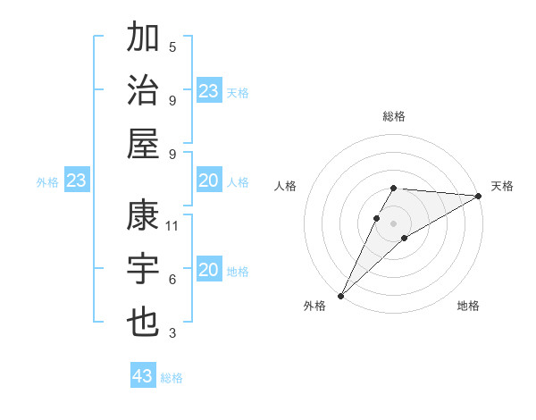 加治屋 康宇也さんを姓名の画数から五運を鑑定