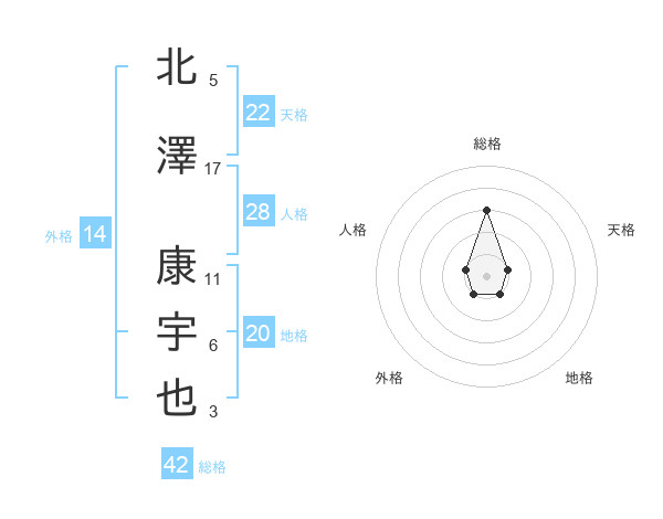 北澤 康宇也さんを姓名の画数から五運を鑑定