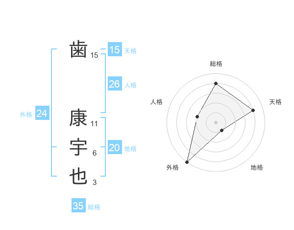 歯 康宇也さんの総格は35画の4点!