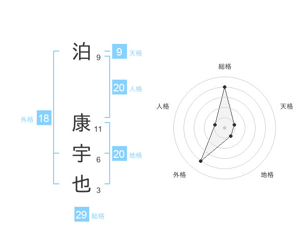 泊 康宇也さんを姓名の画数から五運を鑑定