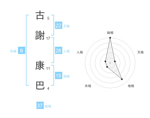 古謝 康巴さんを姓名の画数から五運を鑑定