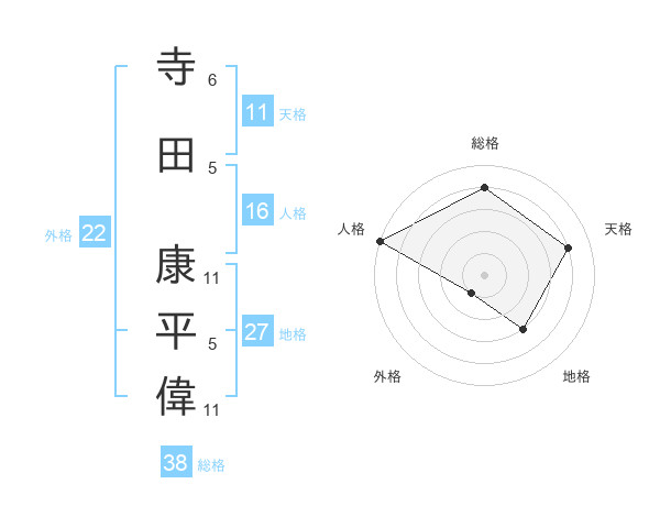 寺田 康平偉さんを姓名の画数から五運を鑑定