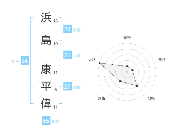 浜島 康平偉さんを姓名の画数から五運を鑑定