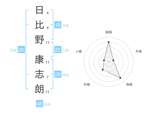 日比野 康志朗さんの総格は48画の4点!