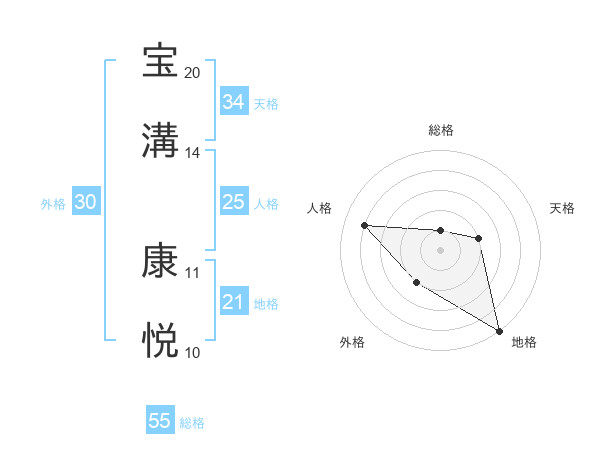 宝溝 康悦さんを姓名の画数から五運を鑑定