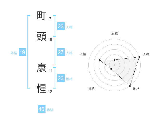 町頭 康惺さんの地格は23画の5点