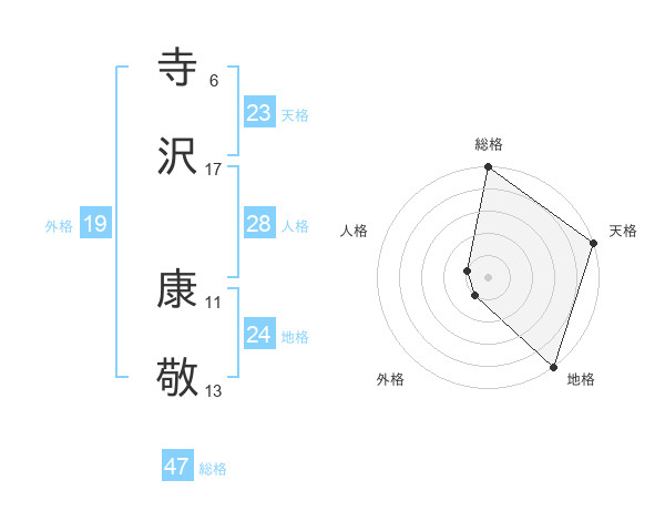 寺沢 康敬さんを姓名の画数から五運を鑑定