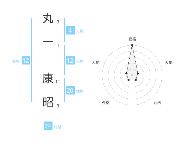 丸一 康昭さんを姓名の画数から五運を鑑定