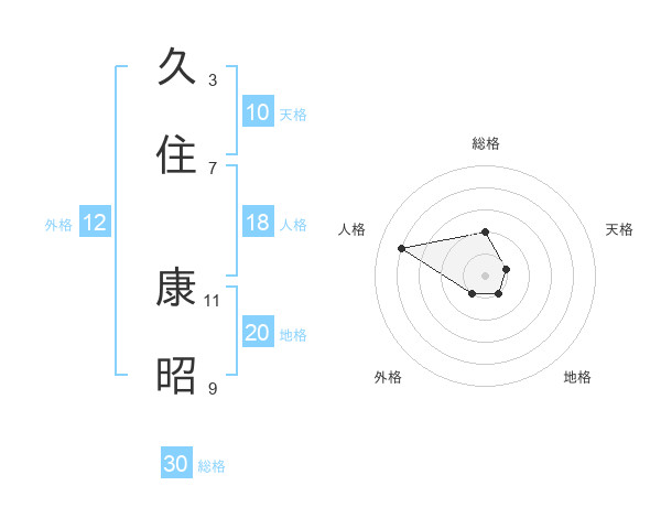 久住 康昭さんの総格は30画の2点!