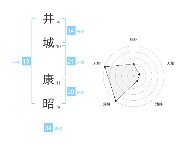 井城 康昭さんの外格は13画の5点!