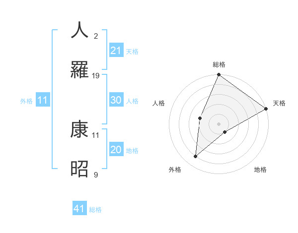 人羅 康昭さんを姓名の画数から五運を鑑定
