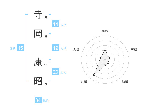 寺岡 康昭さんの天格は14画の1点!