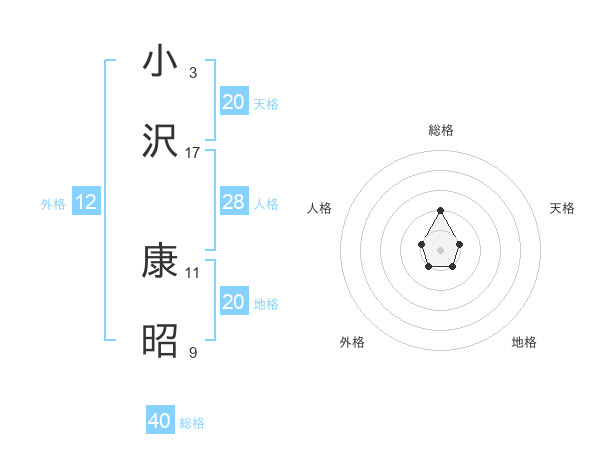 小沢 康昭さんの天格は20画の1点!