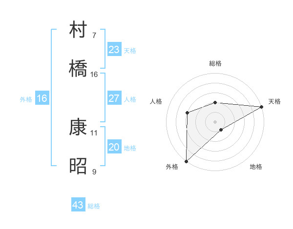村橋 康昭さんを姓名の画数から五運を鑑定