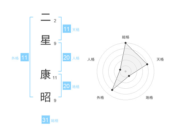 二星 康昭さんの天格は11画の4点!