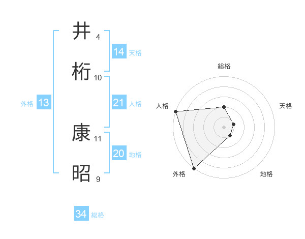 井桁 康昭さんを姓名の画数から五運を鑑定