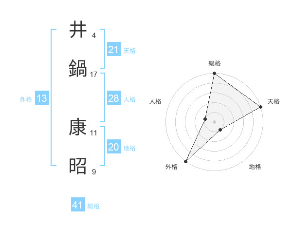 井鍋 康昭さんの総格は41画の5点!