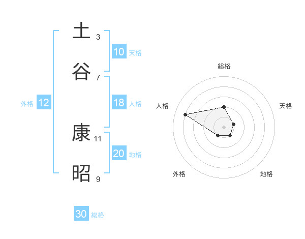 土谷 康昭さんの総格は30画の2点!