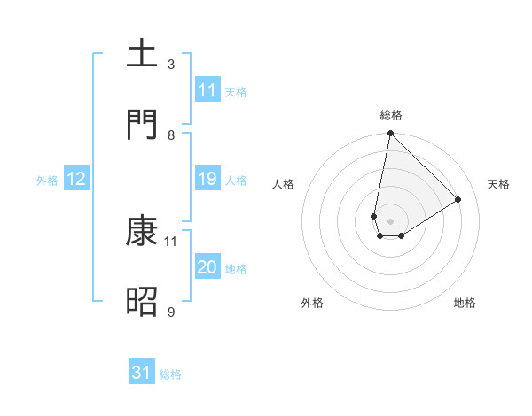 家系が持つ宿命的な運勢を表します。祖先から受け継いだ苗字ですので自分の力が及びません。家柄を象徴します。
