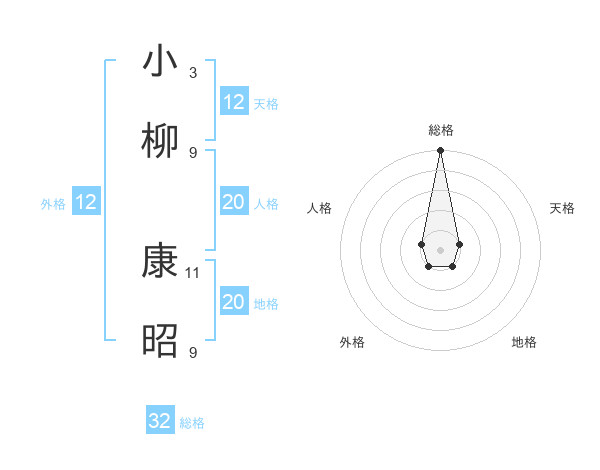 小柳 康昭さんを姓名の画数から五運を鑑定